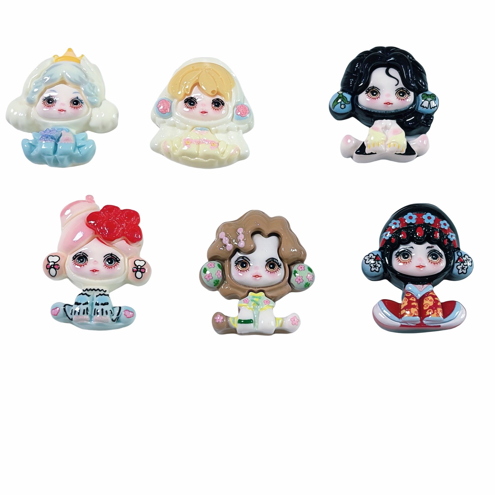 blue, yellow, black blue ribbon, pink, brown, black flowers, all types 6 pcs